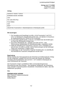 Daher fordern wir gemeinsam mit CDU, Die Linke SÖS Plus, Freie Wähler und FDP, dass die Verwaltung prüft, ob die Feuerwache 3 auf Q14 / Q14.1 im Neckarpark untergebracht werden kann.